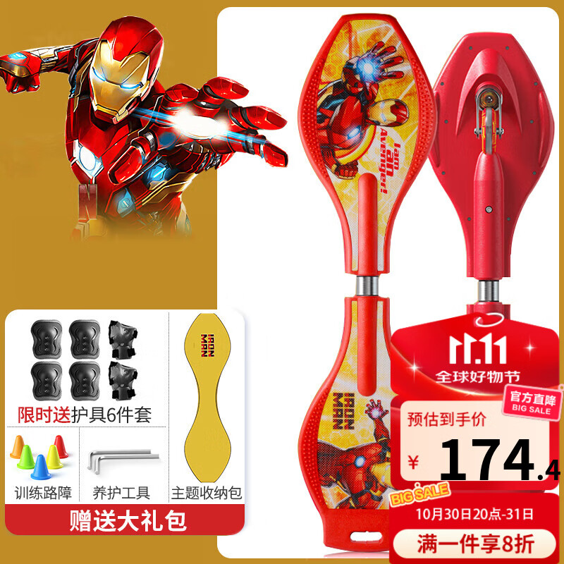 麦斯卡(Mesuca) 儿童滑板活力板二轮初学者游龙板蛇板扭扭两轮摇摆滑板车青少年 【升级款】钢铁侠