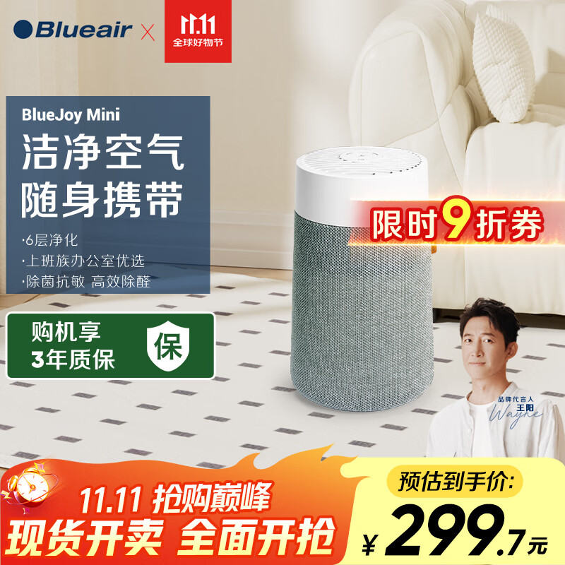 布鲁雅尔(Blueair)【家电国家补贴】桌面空气净化器 BlueJoyMini 家用卧室办公室除甲醛雾霾除异味除病菌 BlueMini