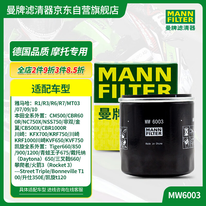 曼牌(MANNFILTER)滤清器摩托车机滤机油滤芯MW6003适用于雅马哈/本田/凯旋全系外置