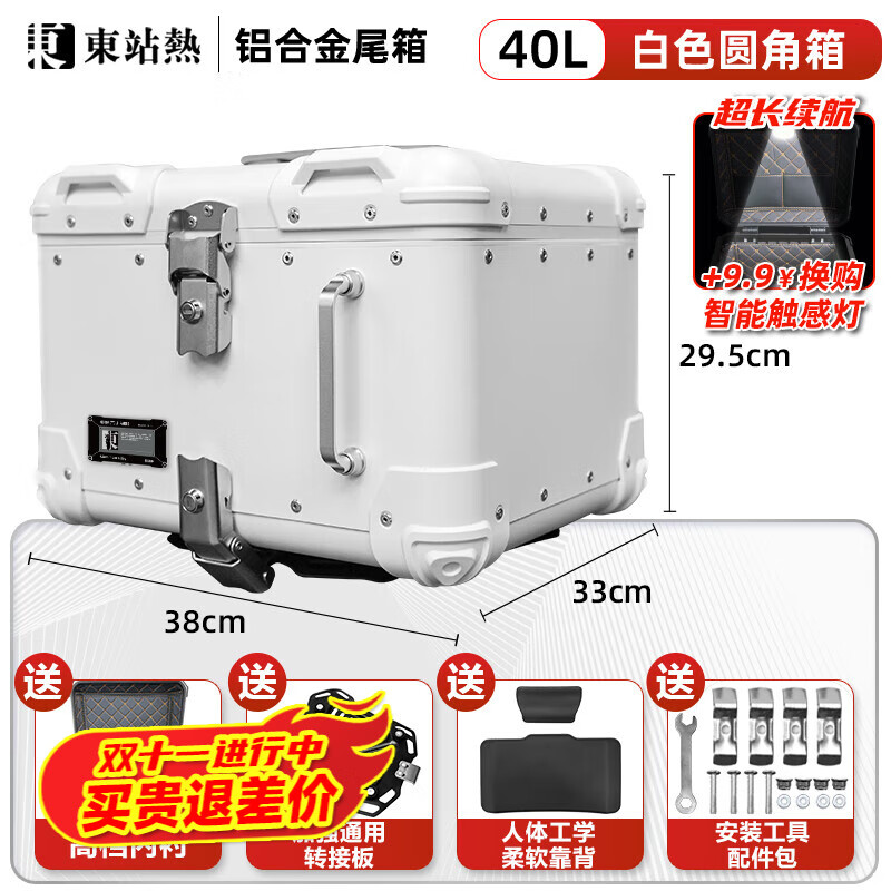 东站热适用本田NWG150尾箱摩托车铝合金后备箱复古大容量后尾箱改装储物 40升白色【快拆底座+内衬+靠背】