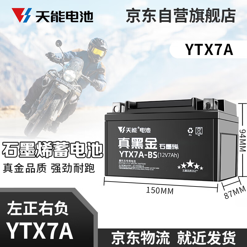 天能电池免维护摩托车电瓶YTX7A海王星女装踏板车铃木12v通用蓄电池