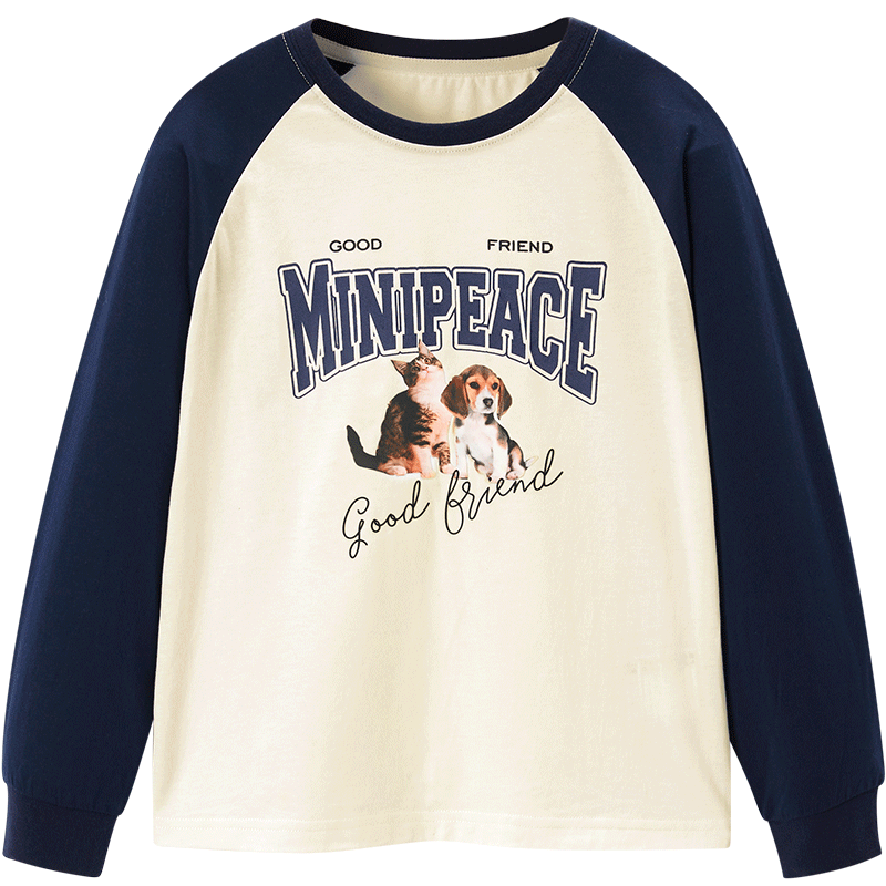 MINI PEACE 太平鸟童装男童长袖T恤儿童内搭上衣插肩袖复古风秋2025新