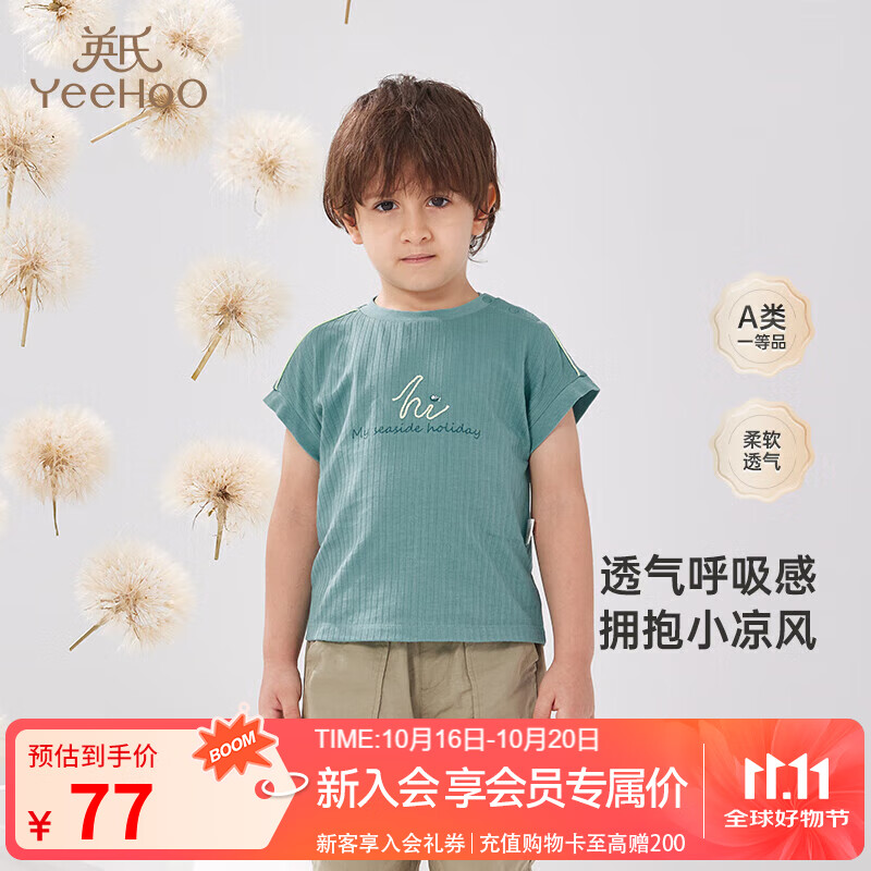 英氏儿童T恤短袖夏装男童上衣透气春夏T恤