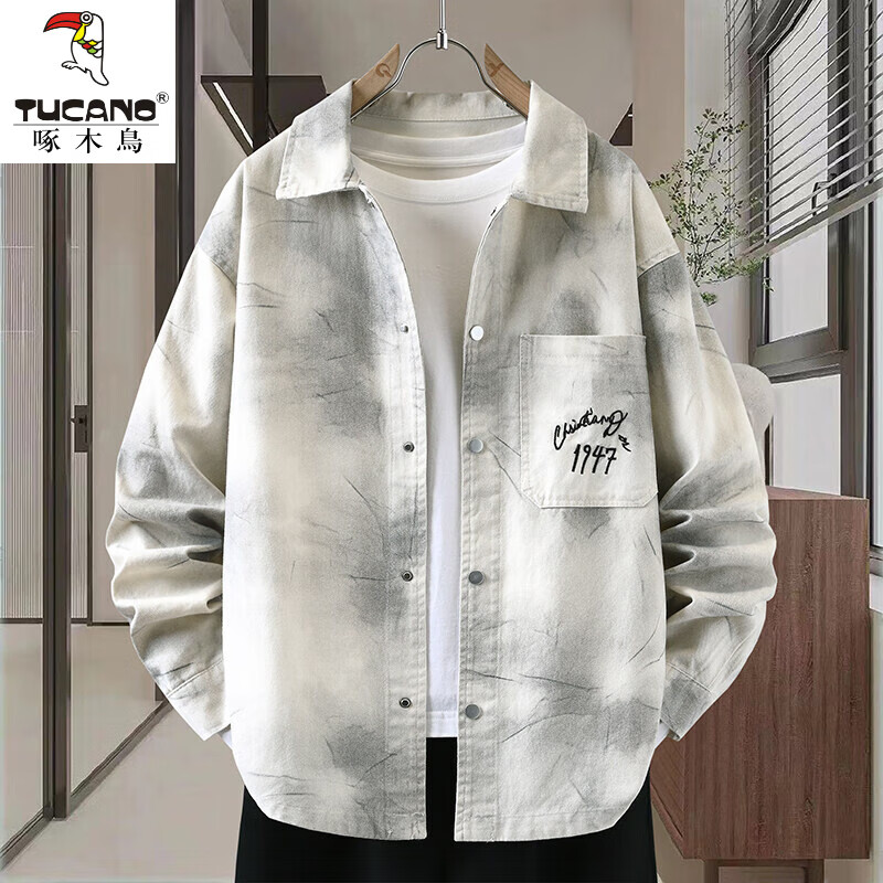 百亿补贴:啄木鸟(TUCANO)设计感长袖衬衫男2025时尚扎染衬衫外套青少年春秋季潮流帅气夹克 10311-TK931杏色 XL 约120-140斤可穿