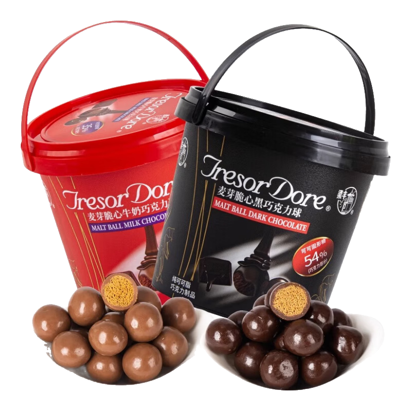 百诺麦丽素桶装巧克力豆夹心纯可可脂新西兰奶源麦芯酥脆儿童520g