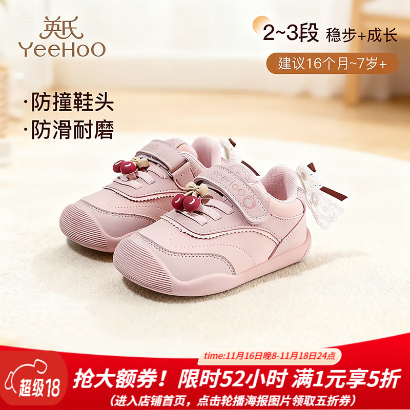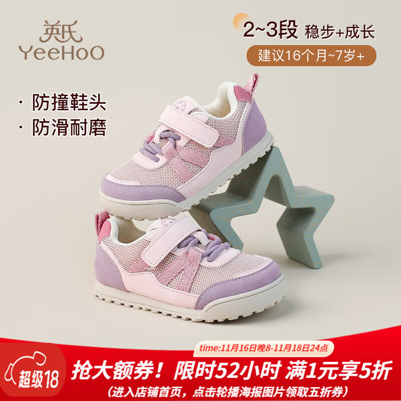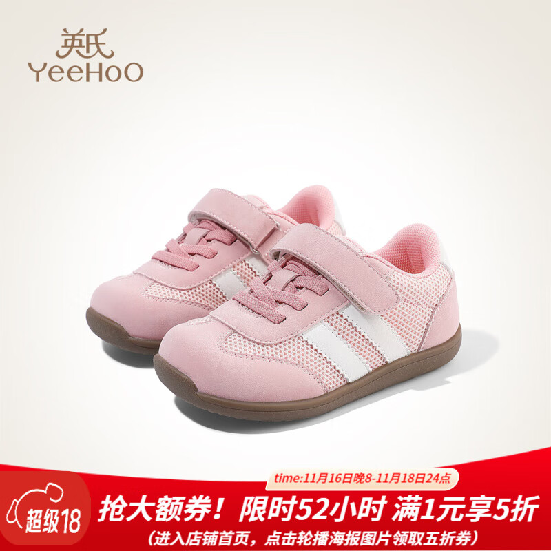 英氏童鞋儿童运动鞋2025秋季新款女童透气网面跑步鞋男童防滑运动鞋 粉色 28 码-适合脚长17.3-17.6cm
