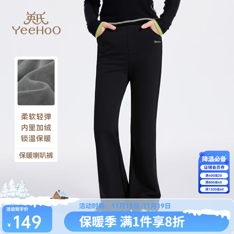 英氏(YEEHOO)女童加绒喇叭裤儿童裤子冬季保暖舒适长裤中大童装洋气冬装新款 毛绒微喇裤-黑色 170 cm