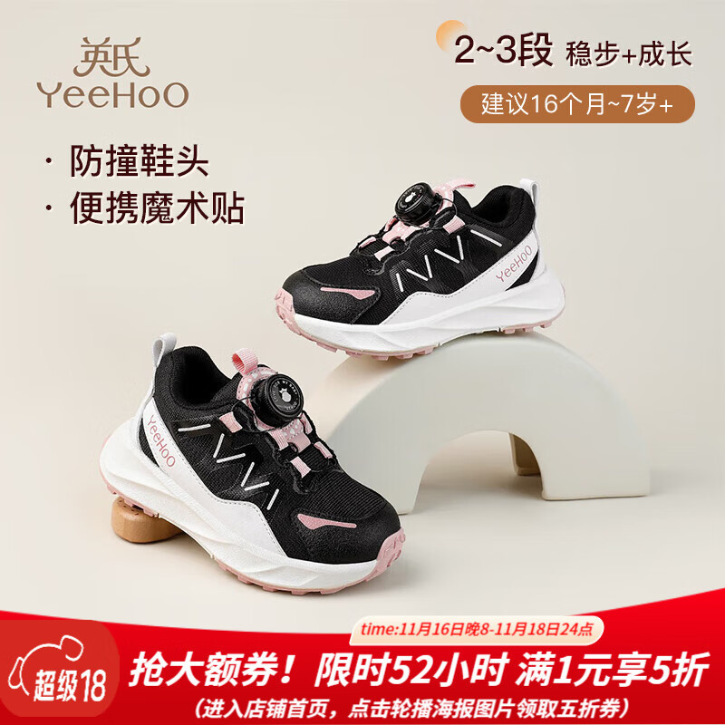 英氏童鞋儿童运动鞋2025秋季新款男童防滑耐磨透气鞋女童训练跑步鞋 黑粉色 24 码-适合脚长14.8-15.1cm