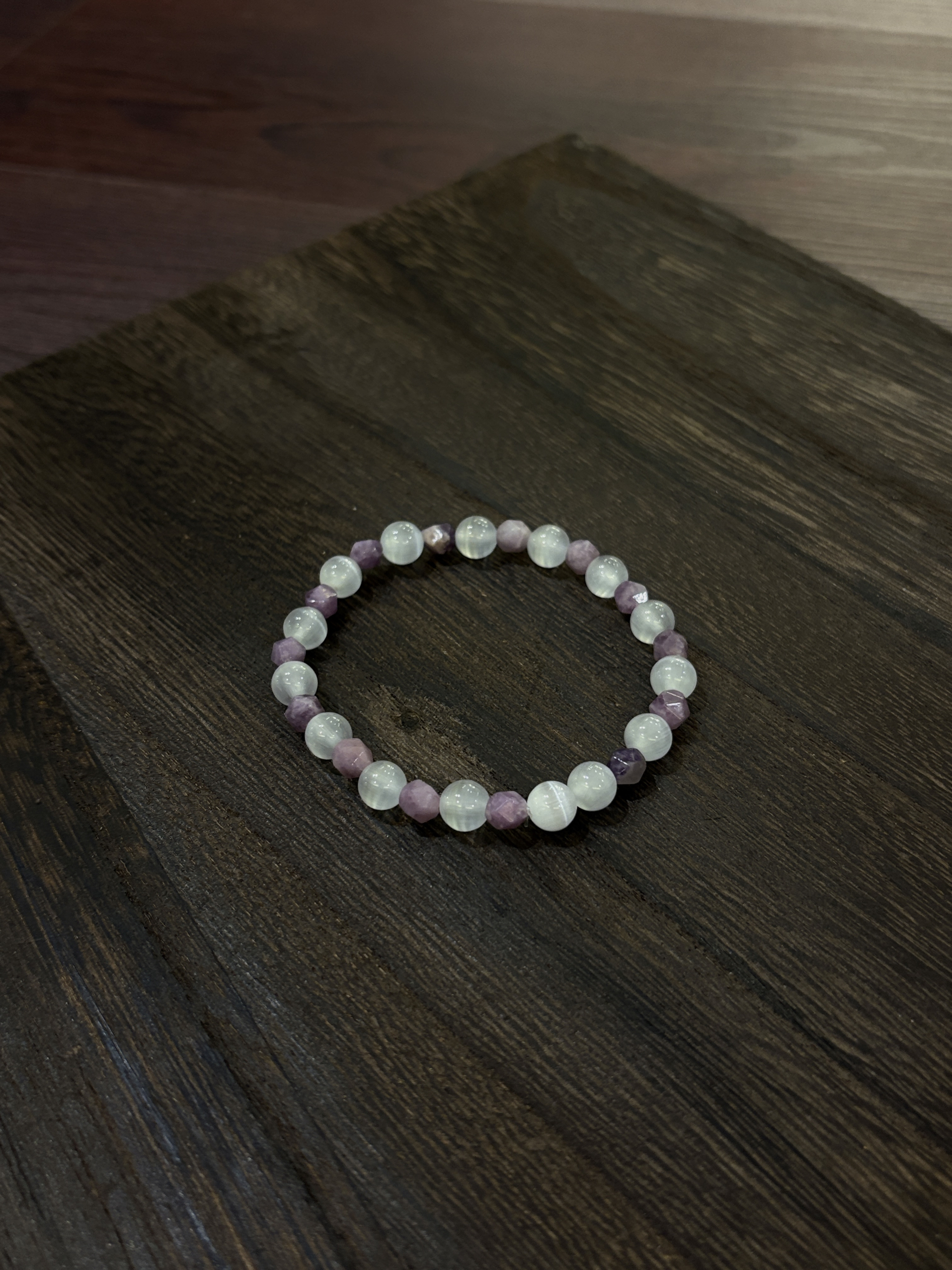白紫色 小心袖口「紫晶石」中古Vintage白紫串珠手链男女简约设计感配饰