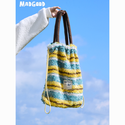 百亿补贴:【配饰】madgood马得工地日系彩色条纹撞色短毛提花束口单双肩包