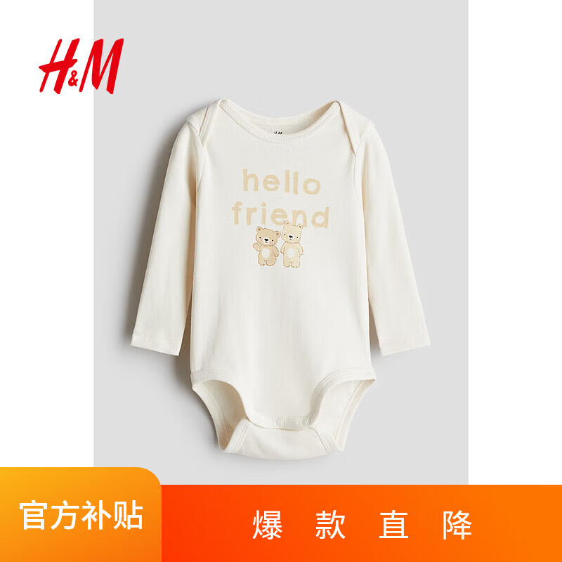 百亿补贴:H&M童装男婴秋季连身衣圆领薄款印花信封领棉质哈衣爬服1259195 奶油色/Hello Friend 80cm 80/48