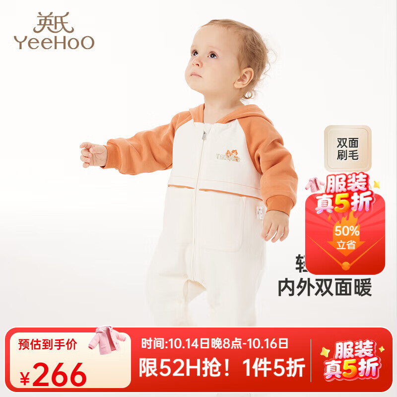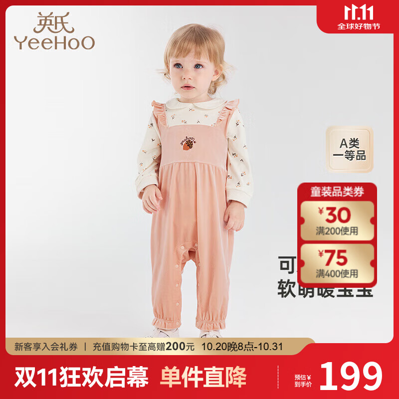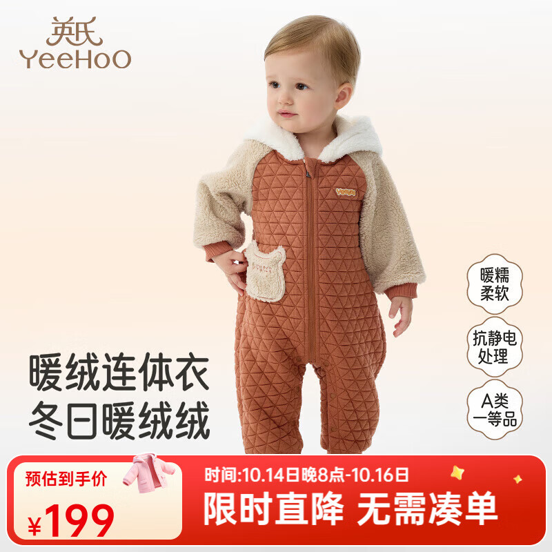 英氏(YEEHOO)婴儿衣服秋冬舒绒棉保暖男童连身衣可爱女童衣服抗静电新款