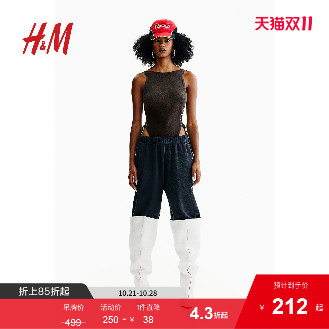 黑色 XS 【H2合作系列】HM女装连体衣秋季针织花边连身衣1252804