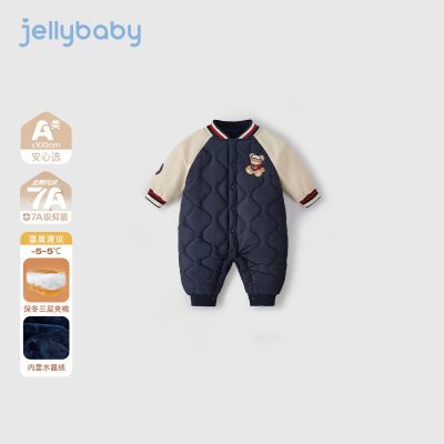 百亿补贴:JELLYBABY抗菌宝宝连体衣秋冬男宝爬服夹棉假两件连身衣婴外出服