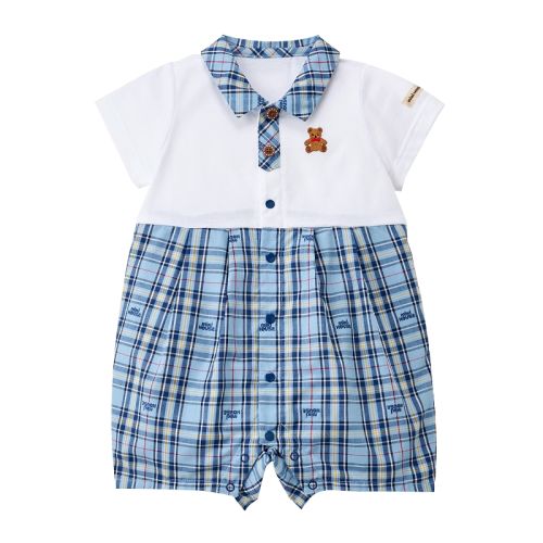 12-1301-570 浅蓝色 70cm 校园风格纹连身衣mikihouse