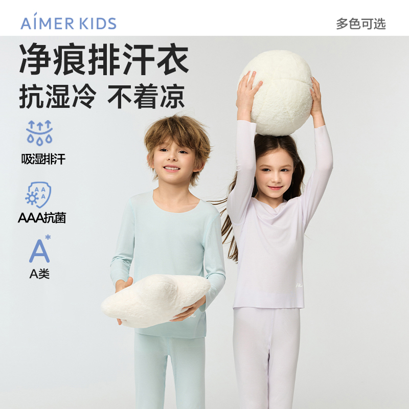百亿补贴:轻暖【5-15℃】云白套装 150cm 爱慕儿童净痕吸湿排汗衣