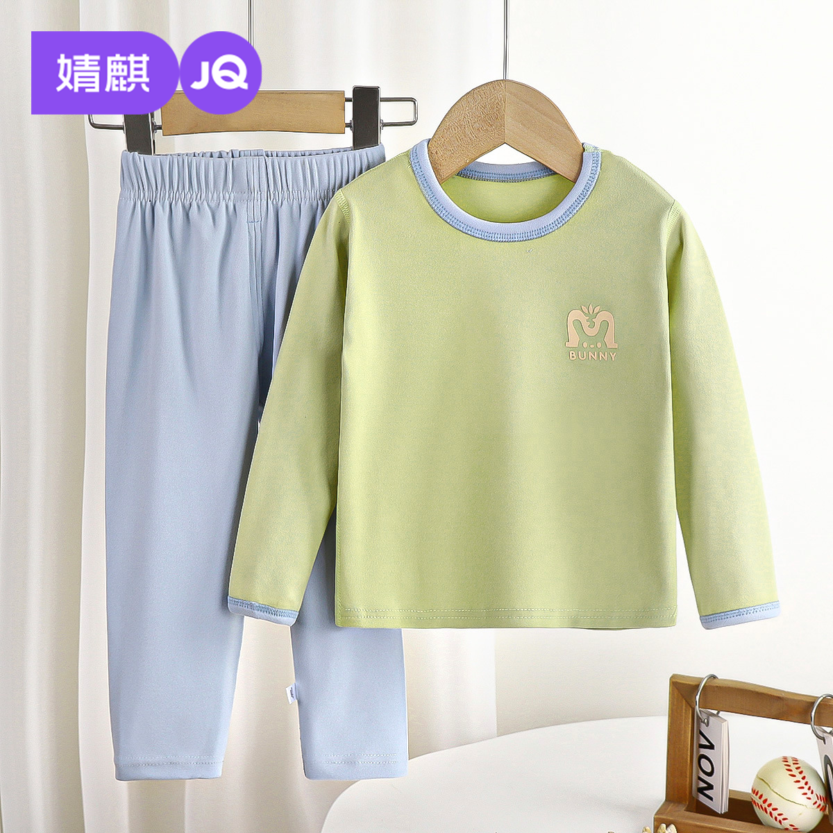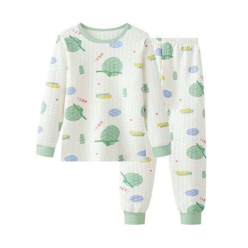 男童-DN615奶芽绿【三层加厚夹棉 抗菌防螨】 100cm 红豆儿童空气层内衣套装秋冬保暖