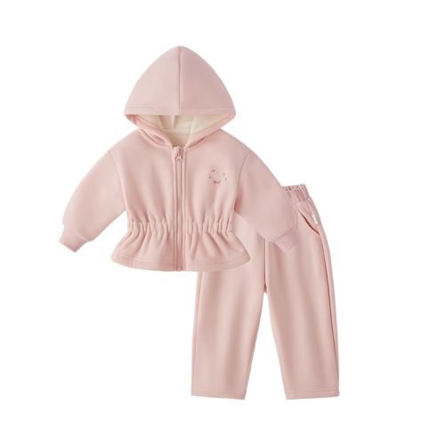 粉色 90cm [抗菌远红外]秋装女童秋冬甜美两件套加绒连帽长袖长裤儿童秋套装