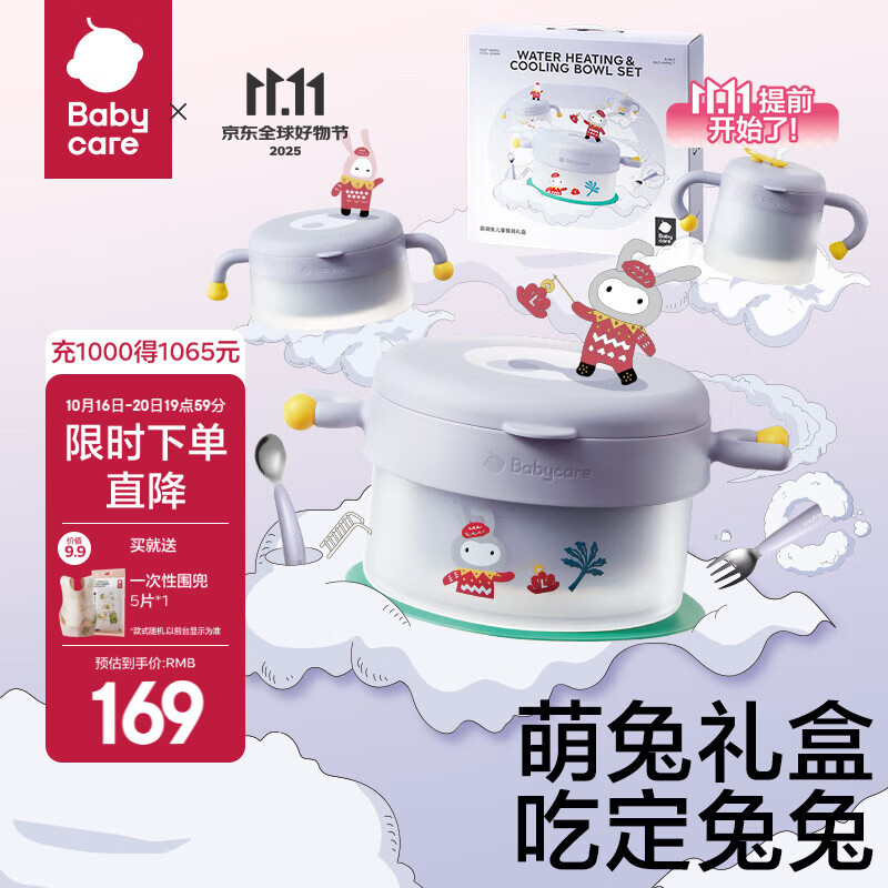 babycare宝宝辅食碗婴儿注水保温碗恒温不锈钢ppsu儿童宝宝餐具套装礼盒 萌萌兔餐具礼盒-五件套