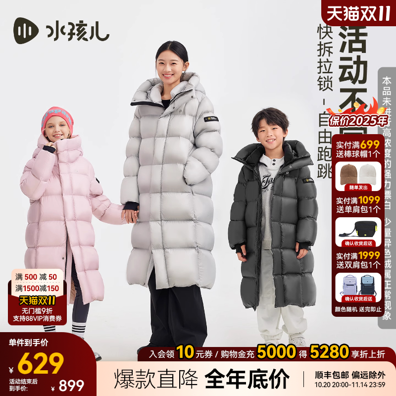 钻石黑 [现货] 110cm 水孩儿童鹅绒服加长亲子羽绒外套