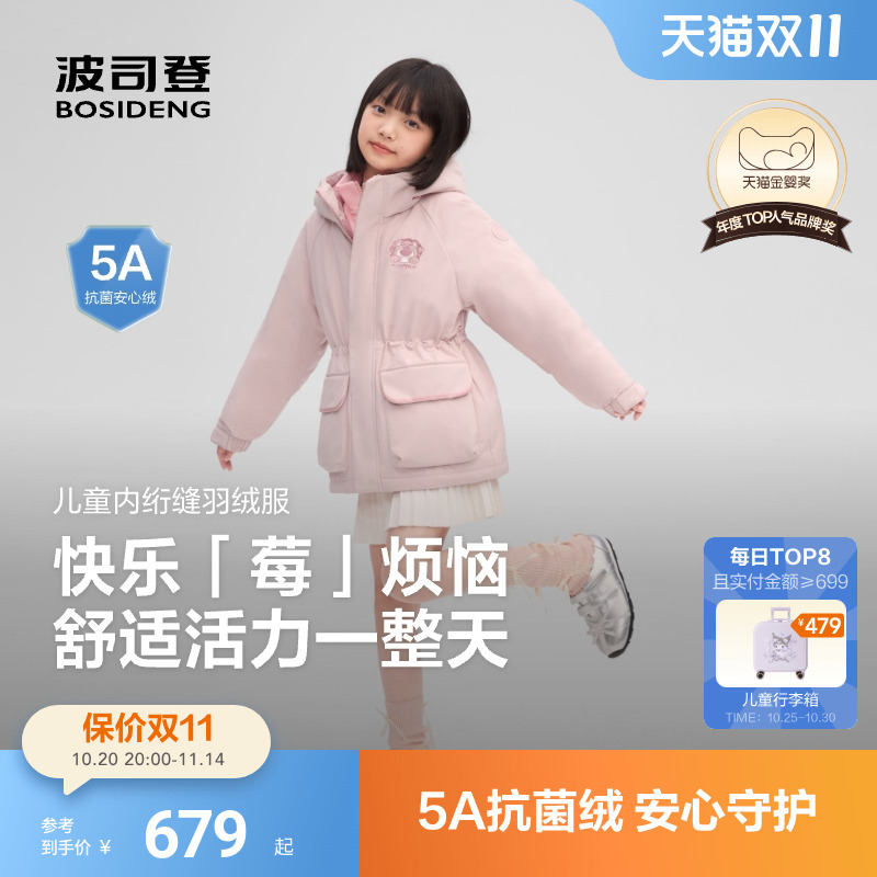甜酷粉1842 110/56 【草莓熊联名】波司登儿童羽绒服女童收腰款粉色外套女童加厚冬装
