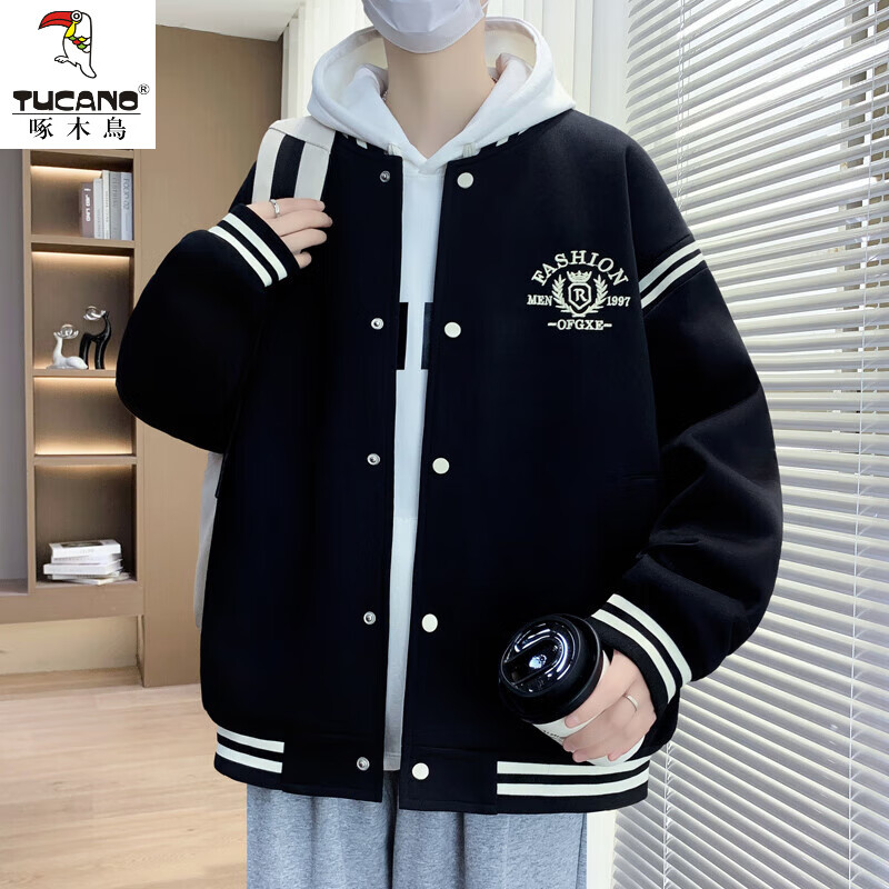 百亿补贴:啄木鸟(TUCANO)棒球服男2025新款春秋季青少年高中初中学生外套潮牌宽松帅气夹克 10635-8862黑色 L