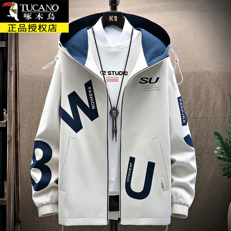 百亿补贴:啄木鸟夹克男外套连帽春秋季新款青少年男百搭潮流港风休闲宽松衣服男装 米白色 M