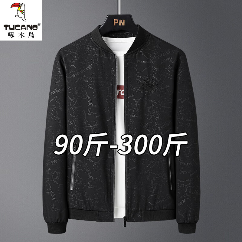 百亿补贴:啄木鸟(TUCANO)男士外套春秋季2025新款潮胖子加肥加大码男装宽松休闲肥佬夹克 FJA407-2068黑色 8XL 【推荐245-270斤】