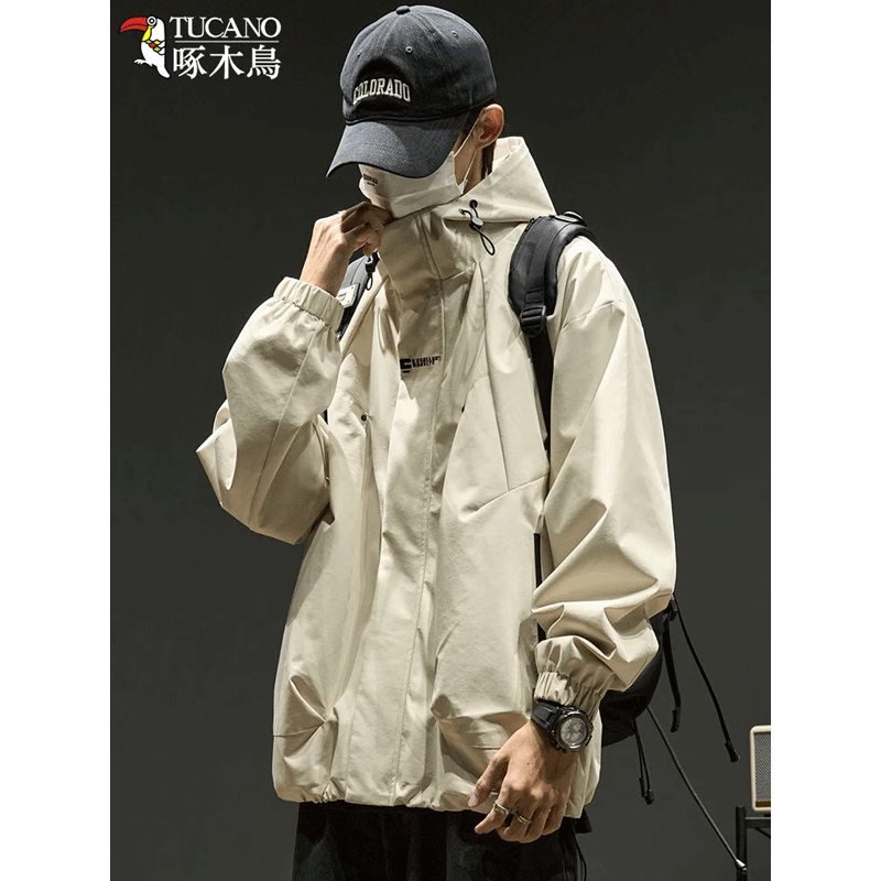 百亿补贴:啄木鸟冲锋衣男春秋2025新款潮流男士工装痞帅夹克户外防风防水上衣外套 浅卡其 2XL