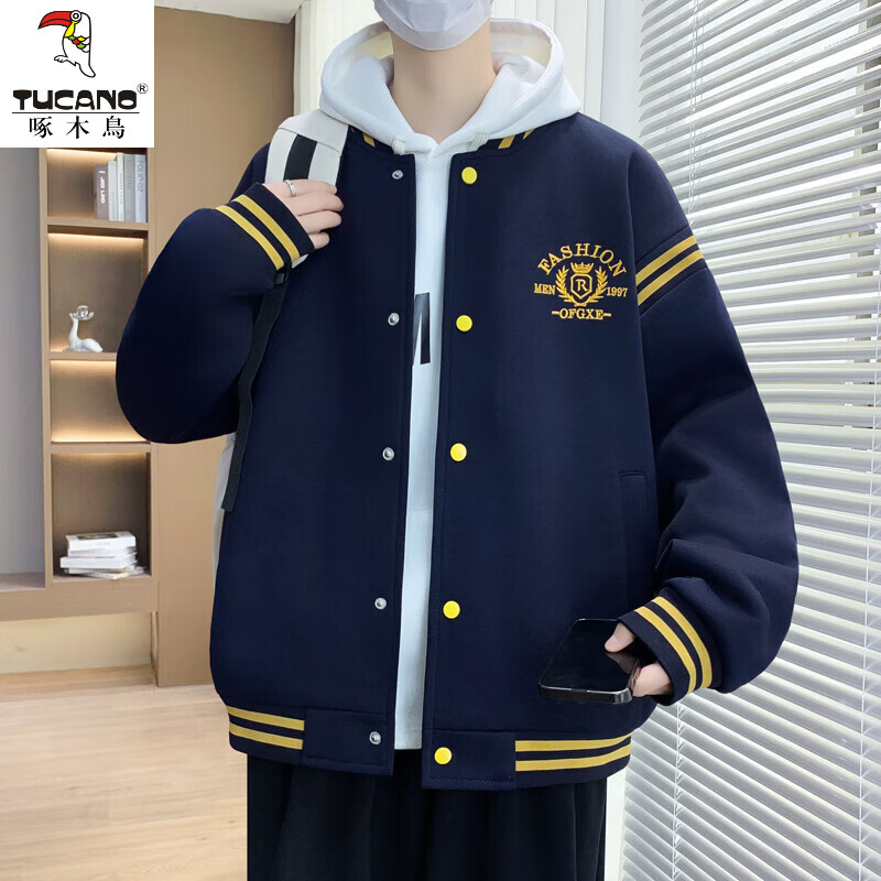 百亿补贴:啄木鸟(TUCANO)棒球服男2025新款春秋季青少年高中初中学生外套潮牌宽松帅气夹克 10635-8862蓝色 XL
