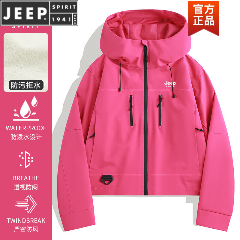 百亿补贴:JEEP SPIRIT短款冲锋衣女2025新款春秋季户外小个子防风运动外套夹克男 女款-芭比粉 S