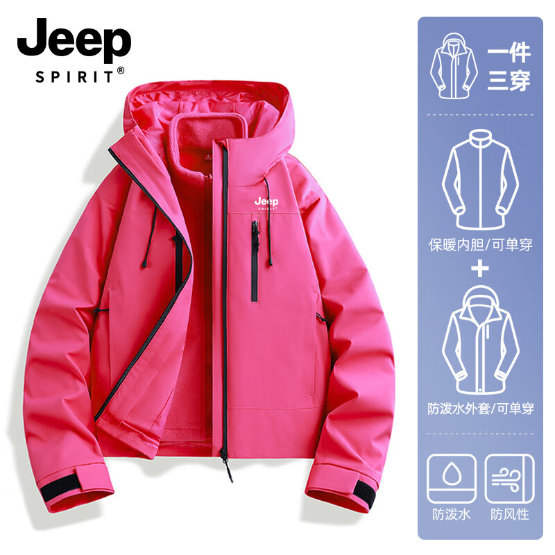 百亿补贴:JEEP SPIRIT吉普2025新款女冲锋衣春秋户外三合一防风防水登山服外套可拆卸 女款-芭比粉【三合一/内胆】 M