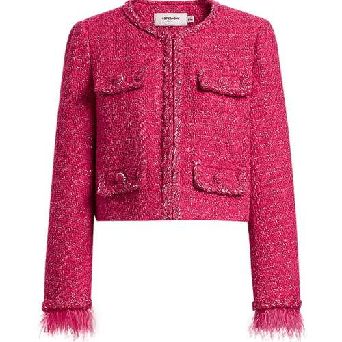 聚划算:芭比玫粉色152 S 红袖outlets2024春季新款女装香风亮丝织带边单排扣圆领短外套