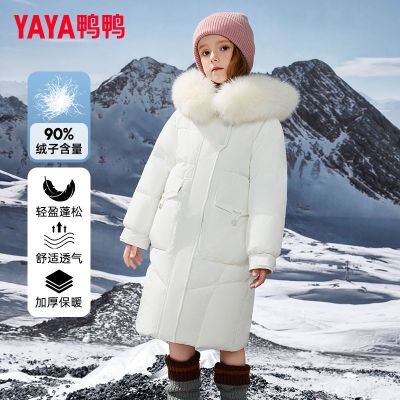 百亿补贴:鸭鸭儿童羽绒服女童冬季连帽中长款休闲风中大童装外套WJ反季清仓