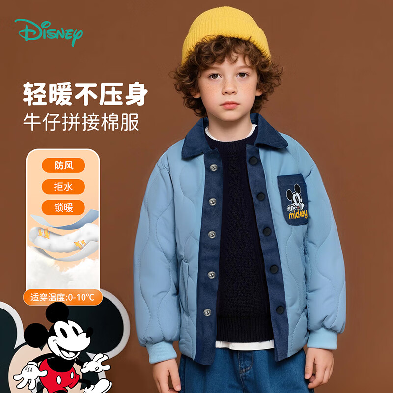 迪士尼(Disney)男童学院卡通系列棒球棉服外套防水保暖棉服儿童宝宝新款冬款 ZD4ES022灰蓝 100
