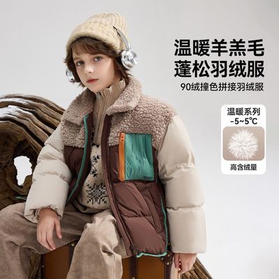 百亿补贴:ASK junior儿童羽绒服2025冬季拼接防羊羔毛外套男童7A抗菌绒外套
