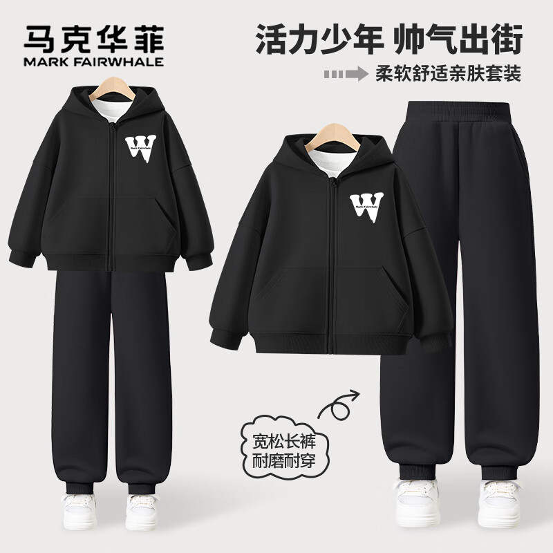 马克华菲男童套装春秋款2025新款儿童外套男孩开衫连帽秋装中大童帅气童装 黑Z01+黑Z 120