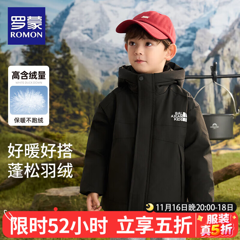 罗蒙儿童羽绒服男童冬季加厚羽绒外套2025新款童装黑色保暖羽绒衣 黑色 【蓬松保暖 优质面料】 170 【充绒量:188g】