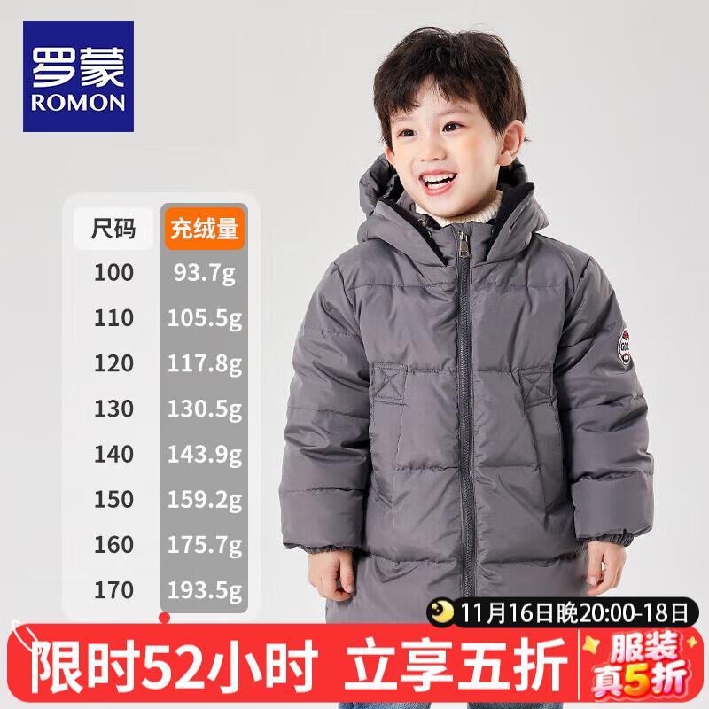 罗蒙儿童羽绒服加厚保暖冬装2025新款冬季男童中长款羽绒外套黑色 灰色 170