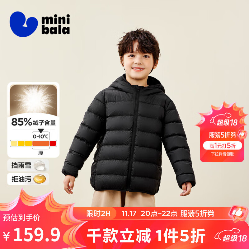 迷你巴拉儿童羽绒服男女童厚款保暖连帽棉服防风保暖羽绒外套【防水透湿】 黑色90001 【白鸭绒-1000+洁净度】 150 【充绒量65.2g】
