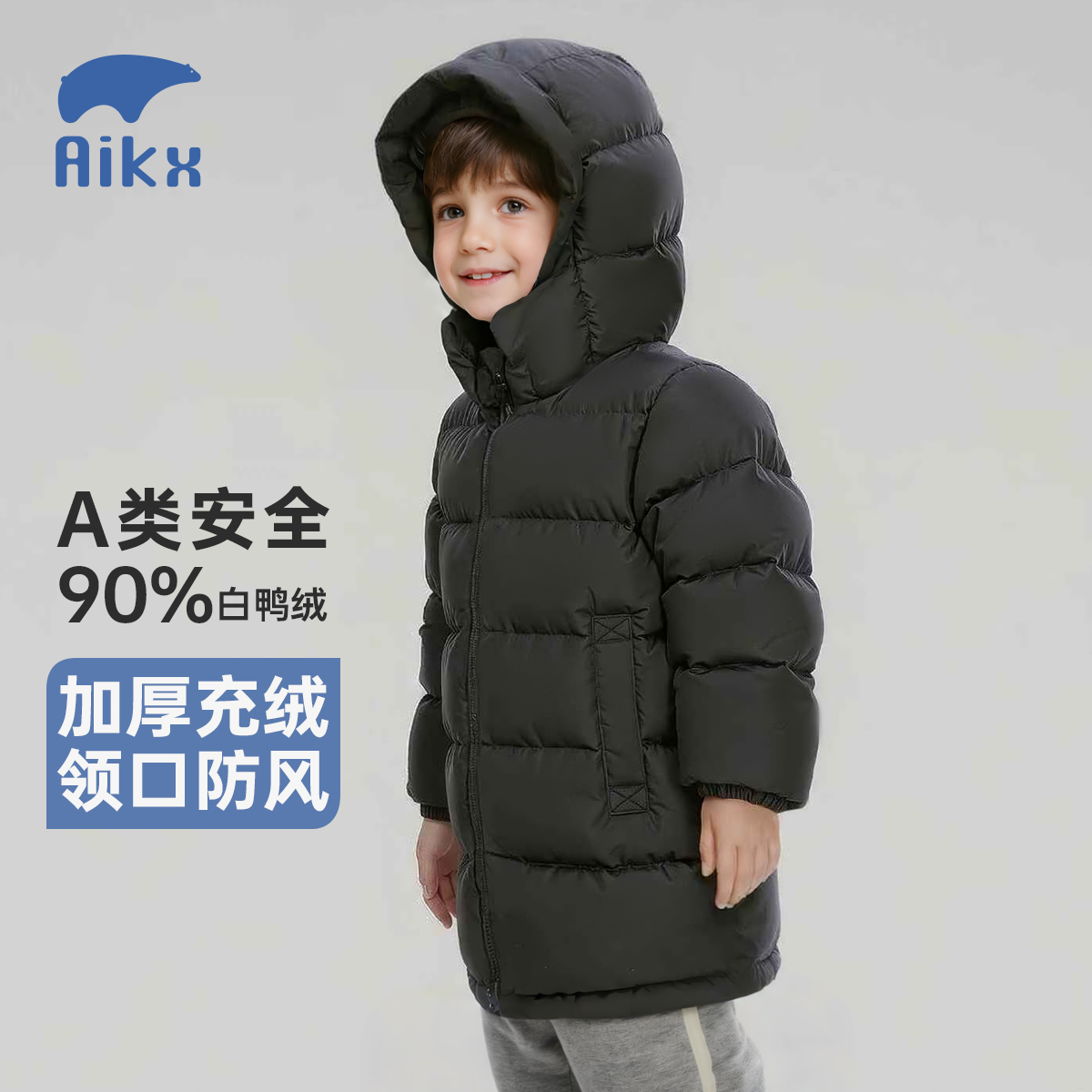 黑色 90cm 艾可休中长款厚款羽绒服冬季儿童