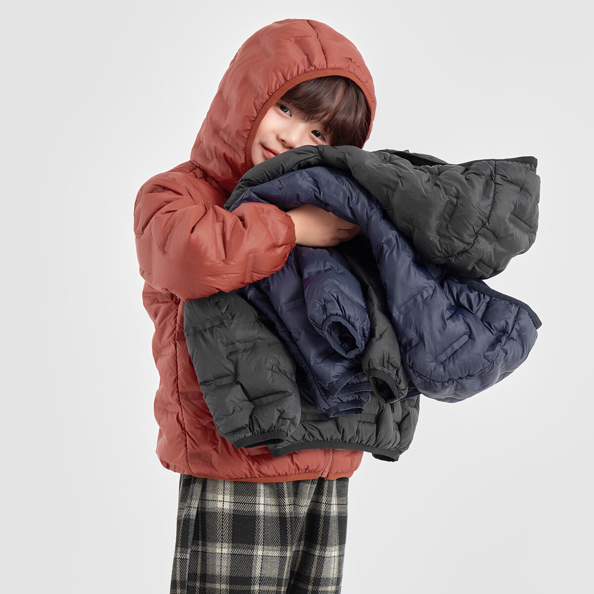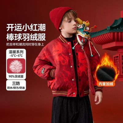 多多家【云梯直充防钻绒】男童轻薄防泼水羽绒服秋冬款保暖百搭儿童外套 正红色 150