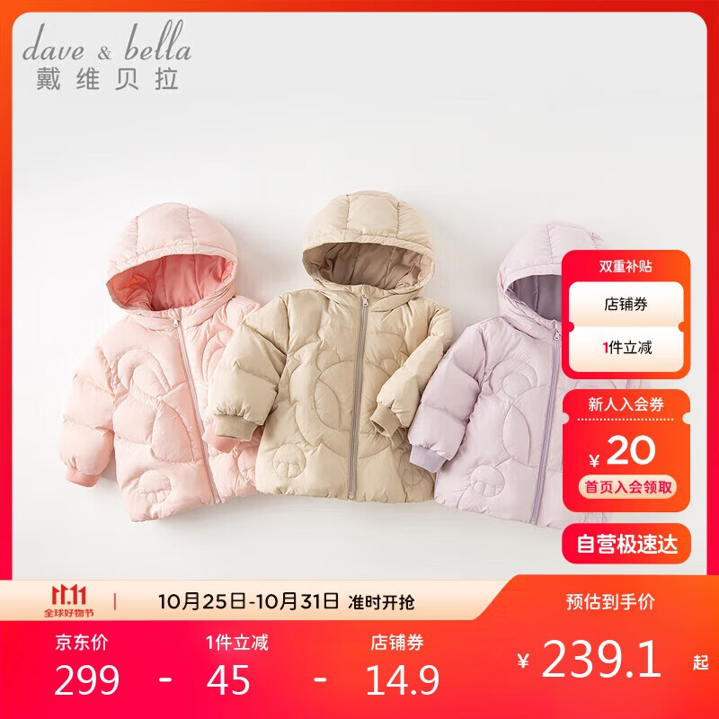 戴维贝拉【抗菌绒】儿童羽绒服冬装男童三防外套女童上衣
