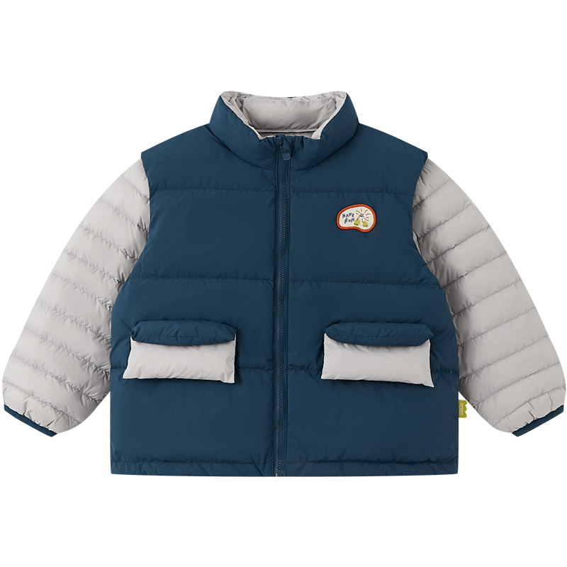 papa爬爬冬季新品儿童羽绒服男童女童两件套保暖加厚防水休闲 藏青 100 cm