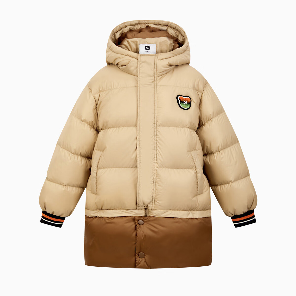 MQD童装男童中长款可拆卸羽绒服23冬儿童保暖羽绒服 卡其 110 (XS)