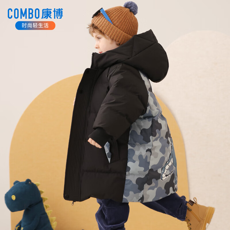 康博男童羽绒服儿童2024冬季新款加厚保暖小童宝宝洋气中长款童装外套 黑色 140