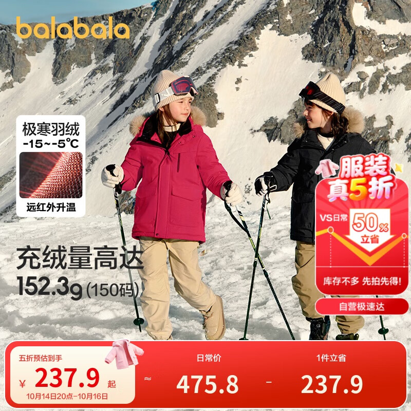 巴拉巴拉运动24冬儿童防寒防水中长款户外毛领羽绒服【bp】208424107211