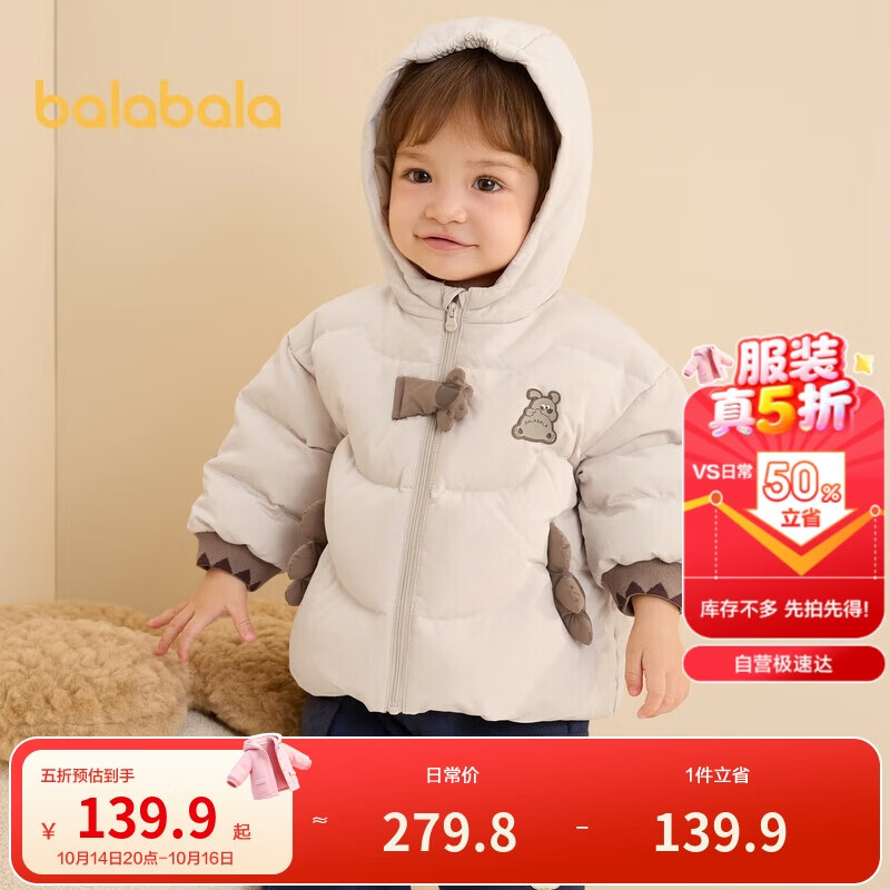 百亿补贴:鸭鸭儿童羽绒服男童连帽可爱加厚宝宝外穿保暖冬季小童面包服