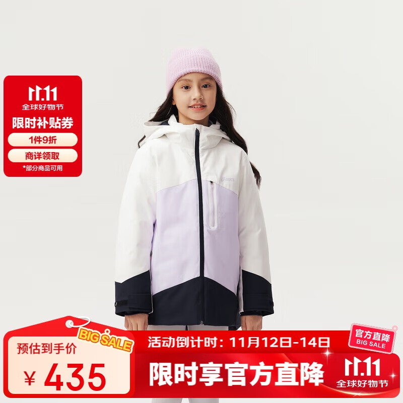 ASICS 亚瑟士 童装2024年冬季三防羽绒服防风透湿儿童羽绒外套334241073009