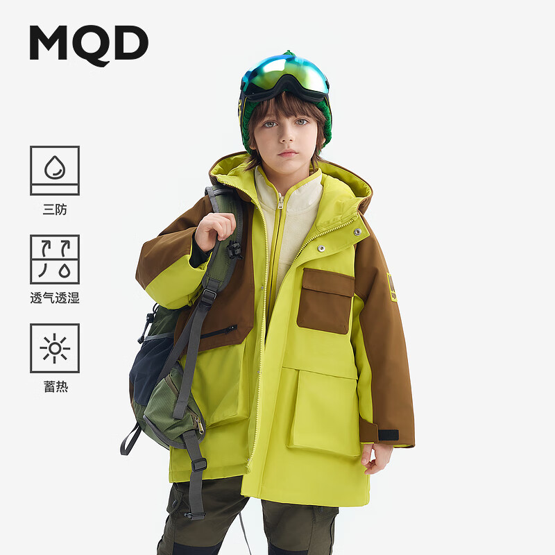 马骑顿(MQD)【三防】MQD儿童羽绒服男童2024冬装中长款连帽外套保暖 牛油果色 160